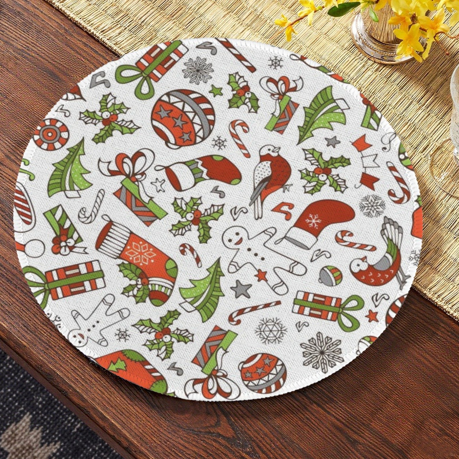 • Set of four round placemats (7.87 inches diameter)