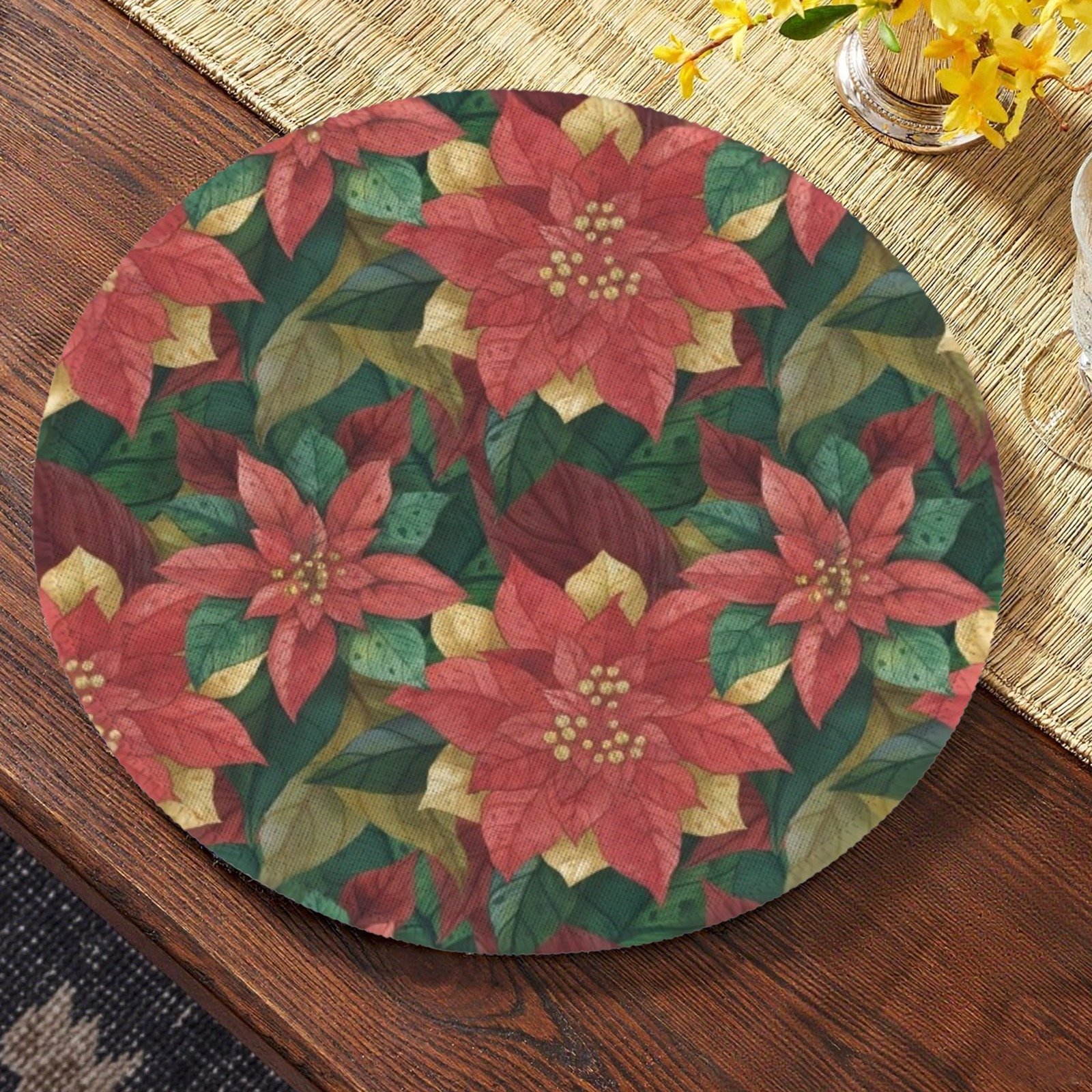 Christmas Placemats featuring red poinsettias bring classic holiday elegance to your dinner table decor—festive, durable, and easy to clean for the perfect holiday dining experience.