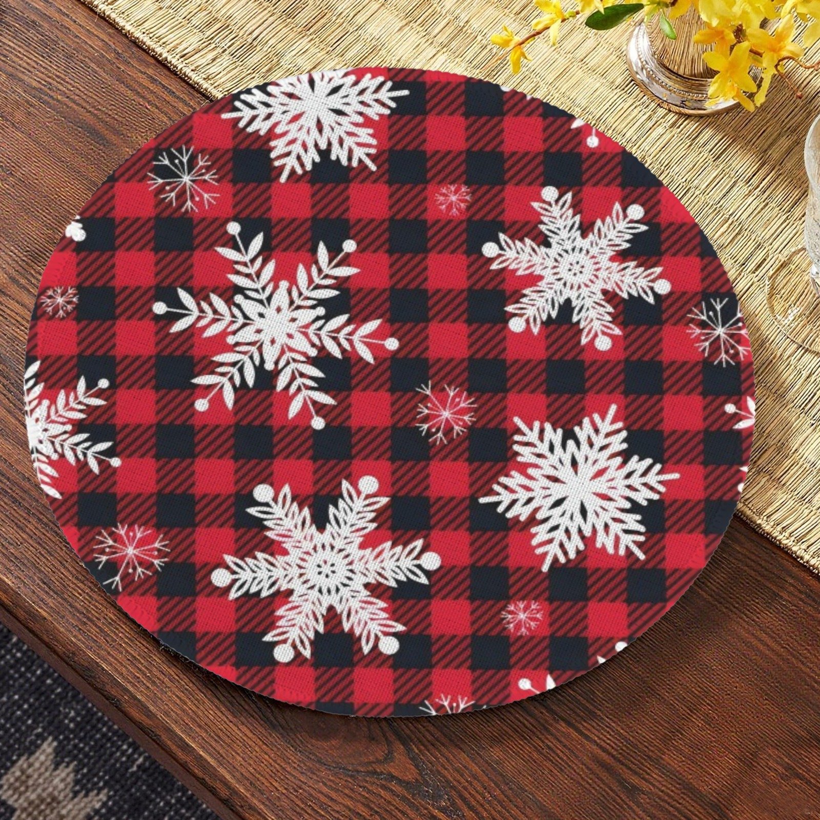 Celebrate the season with bold and festive flair using these Christmas Placemats in the “Red Snow” design. Featuring vibrant red snowflakes against a crisp background, these holiday placemats bring energy and a modern holiday twist to your dinner table decor. Designed with a non-slip rubber backing, they protect your table while staying securely in place. Perfect for creating a lively, festive atmosphere at Christmas dinners, seasonal gatherings, or cozy family celebrations.