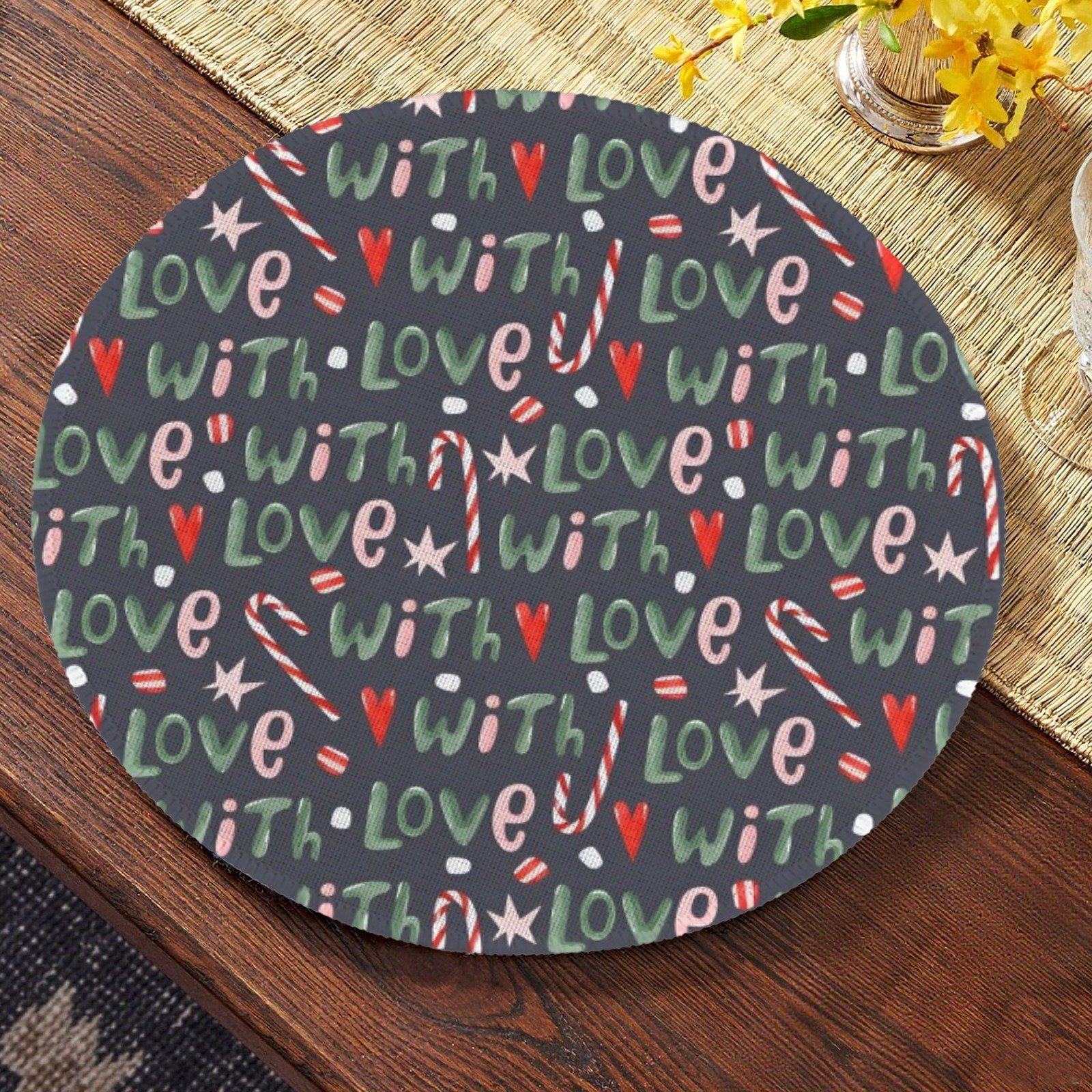 Add a heartfelt touch to your holiday table with these Christmas Placemats featuring a “With Love” design. These holiday placemats showcase charming patterns of hearts, candy canes, and festive accents, bringing warmth and affection to your dinner table decor. Crafted from premium polyester with a durable non-slip rubber backing, they stay securely in place while protecting your table from spills and scratches. Perfect for Christmas dinners, family gatherings, or holiday parties, these christmas placemats create a cozy and inviting table setting filled with holiday spirit.