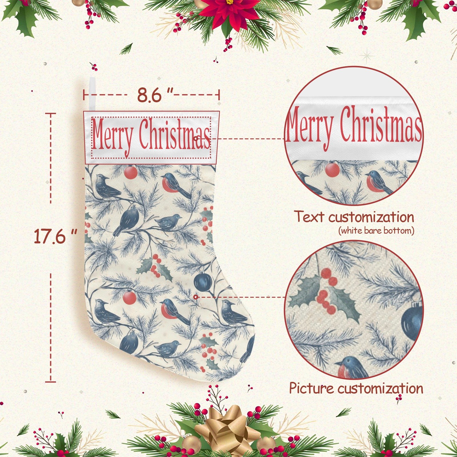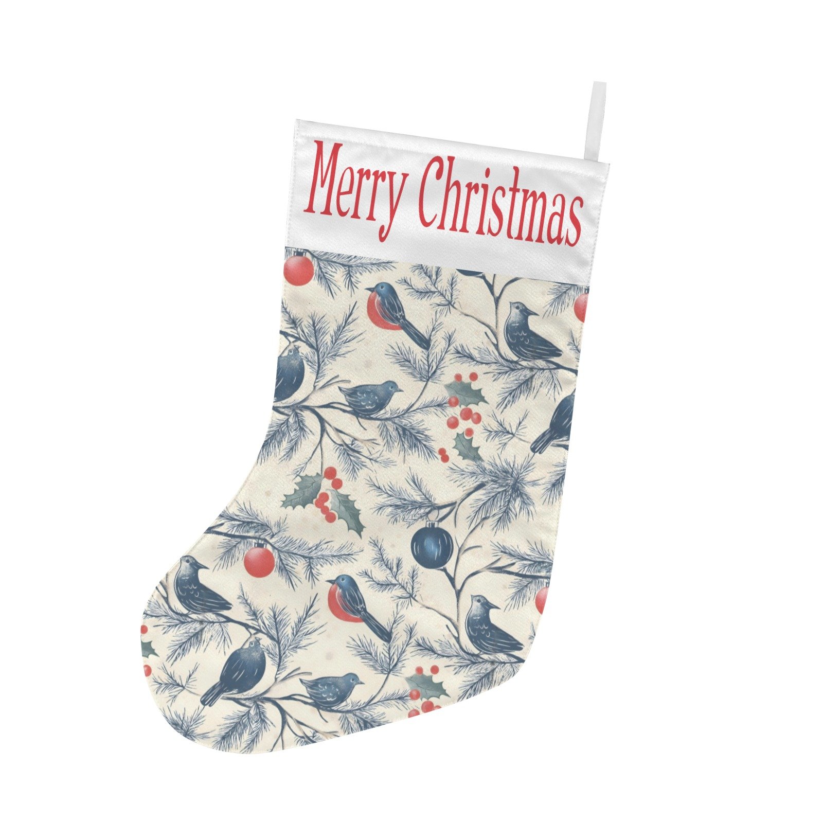 Bring a touch of woodland charm to your holiday with the Christmas Stockings | Holiday Stocking Sock | Blue Birds. Featuring red-bellied bluebirds perched among pine branches and red berries on a soft cream background, this stocking captures the serene beauty of a classic winter morning. Its timeless design adds warmth and nature-inspired elegance to any fireplace, tree, or holiday display.