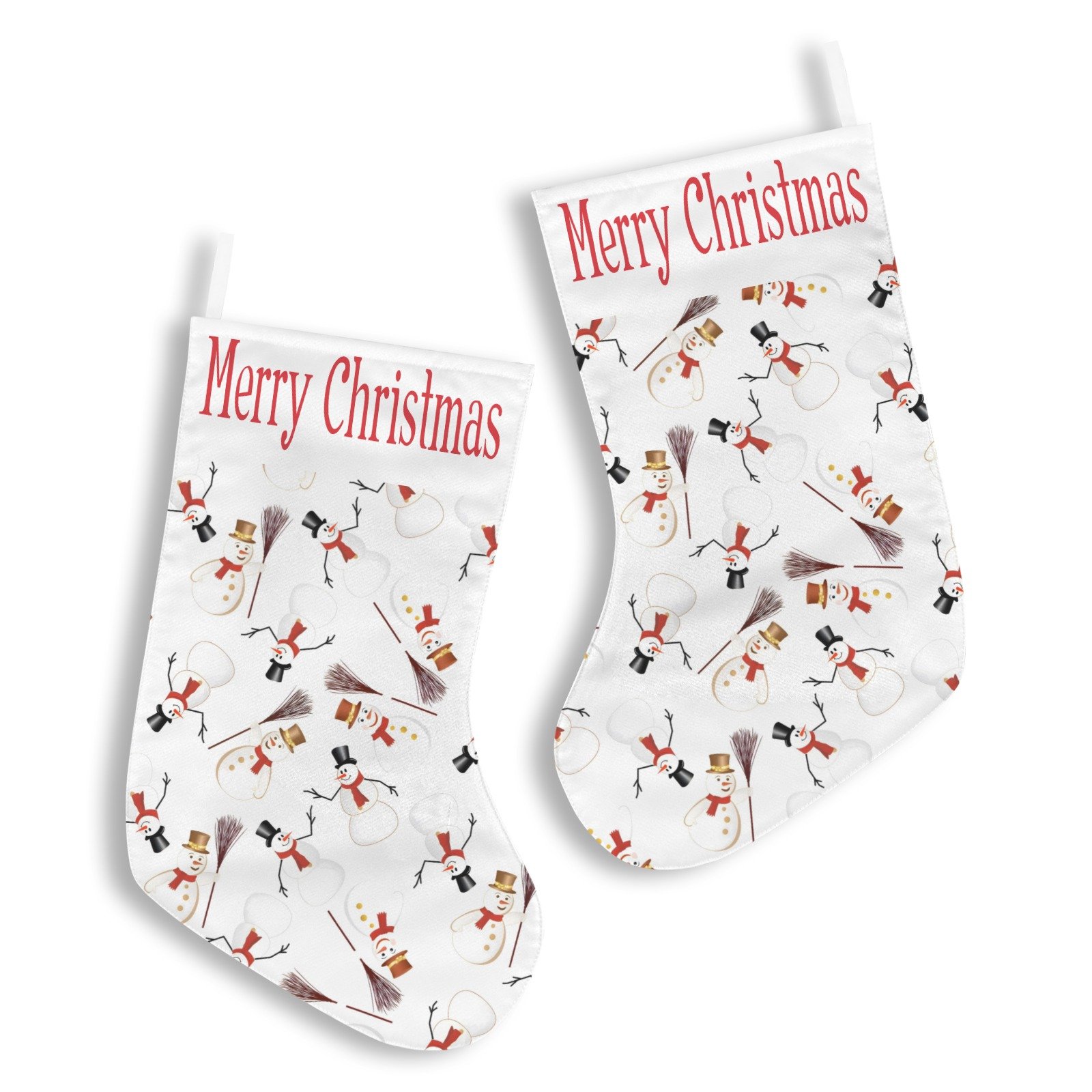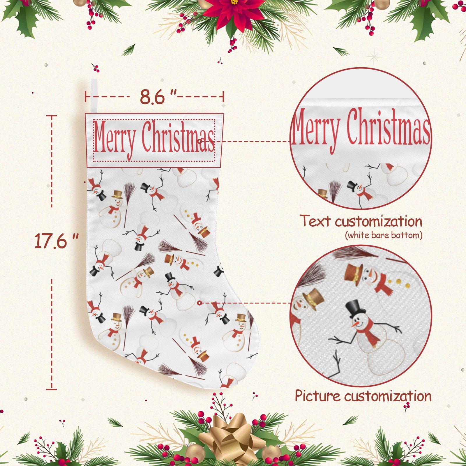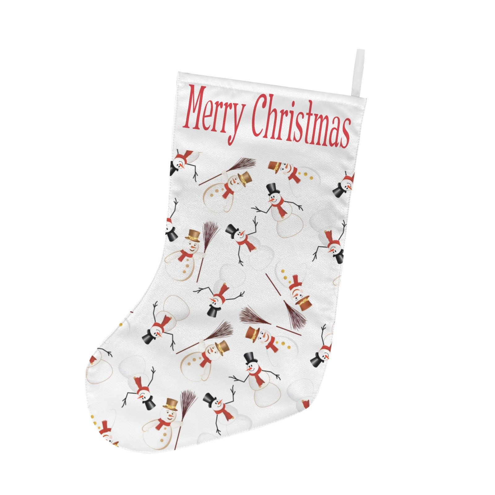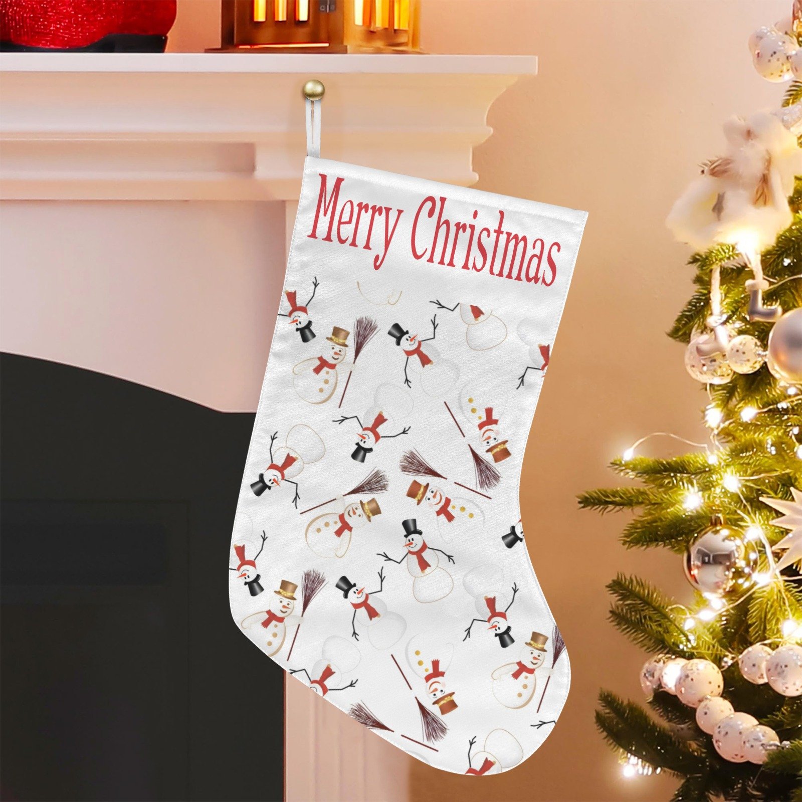 Bring playful winter fun to your home with the Christmas Stockings | Holiday Stocking Sock | Broomsticks. Featuring snowmen carrying brooms on a white background, this festive stocking adds cheerful and whimsical charm to your Christmas home decor.