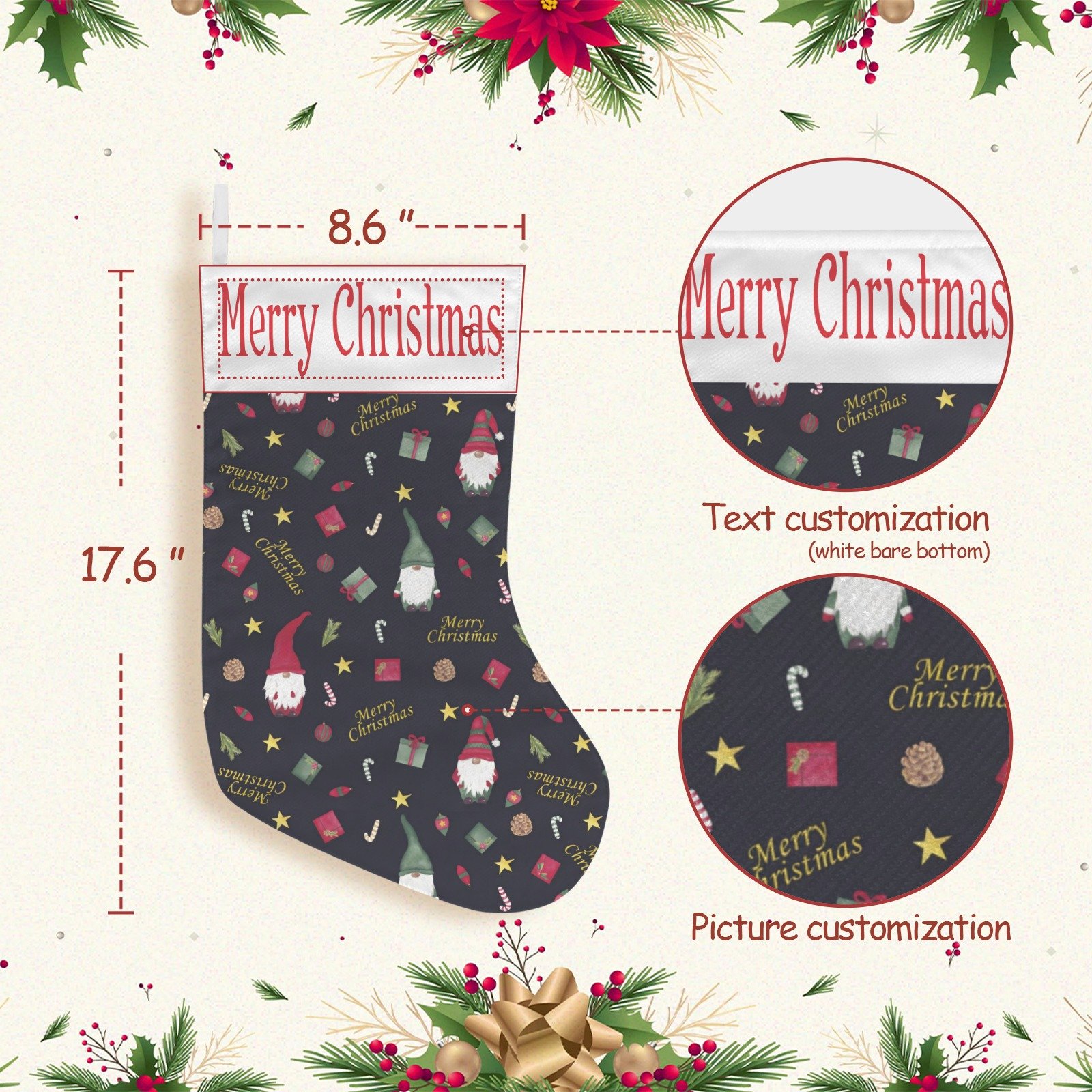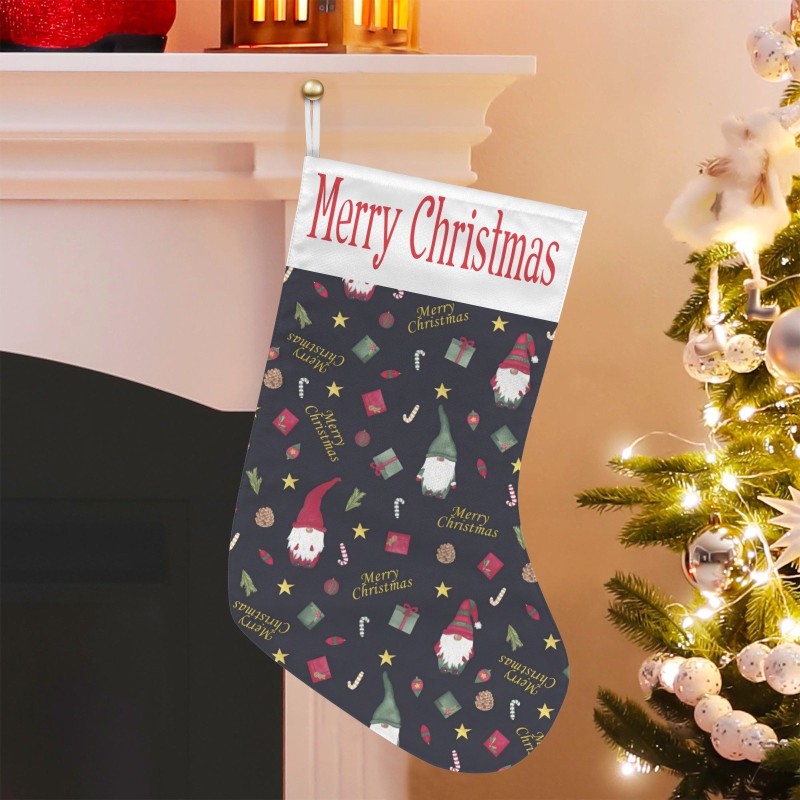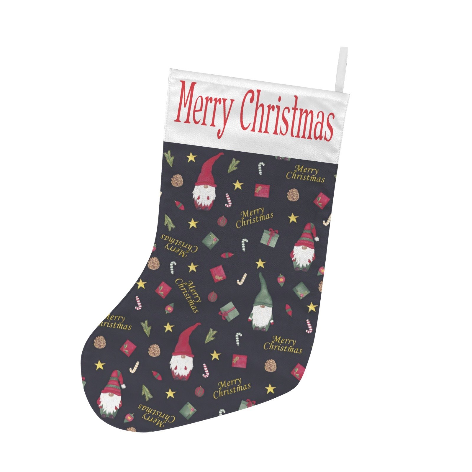 Celebrate the magic of the holidays with the Christmas Stockings | Holiday Stocking Sock | Gnomes, featuring festive gnomes, “Merry Christmas” text, and colorful gifts on a sleek black background. This fun, modern twist on classic Christmas charm makes it a standout accent for any home during the holiday season.