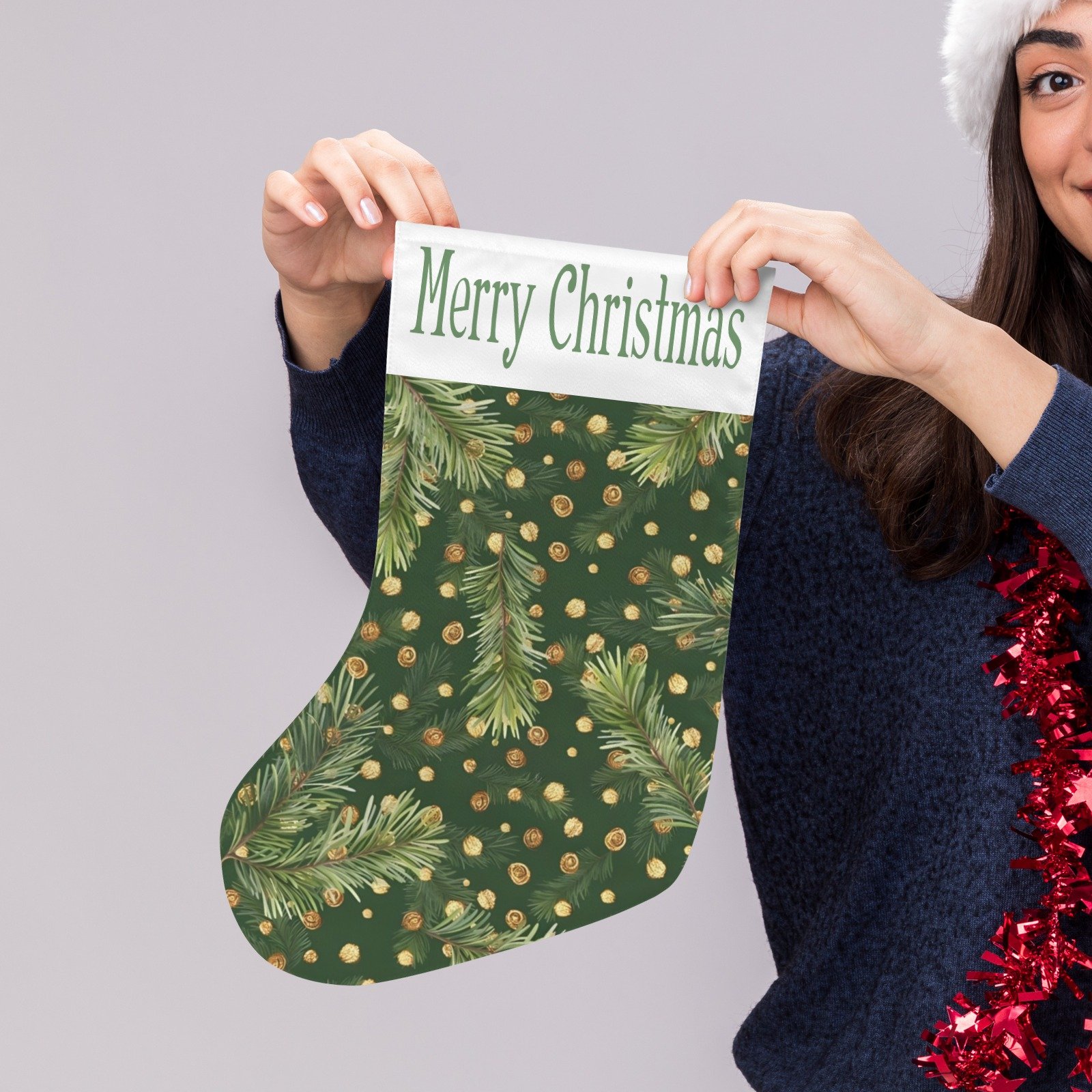#ChristmasStocking #HolidayStocking #GoldPineDesign #ChristmasDecor #FestiveMantel #SeasonalDecor #ElegantChristmas #StockingStuffers #blackfriday #cybermonday