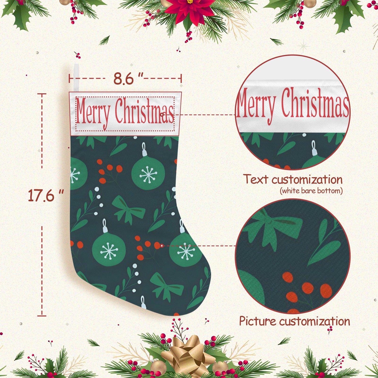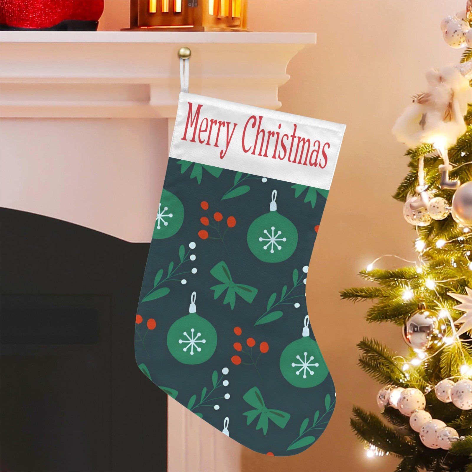 #ChristmasStocking #HolidayStocking #GreenOrnamentsDesign #ChristmasHomeDecor #FestiveMantel #SeasonalDecor #TraditionalChristmas #StockingStuffers #blackfriday #cybermonday