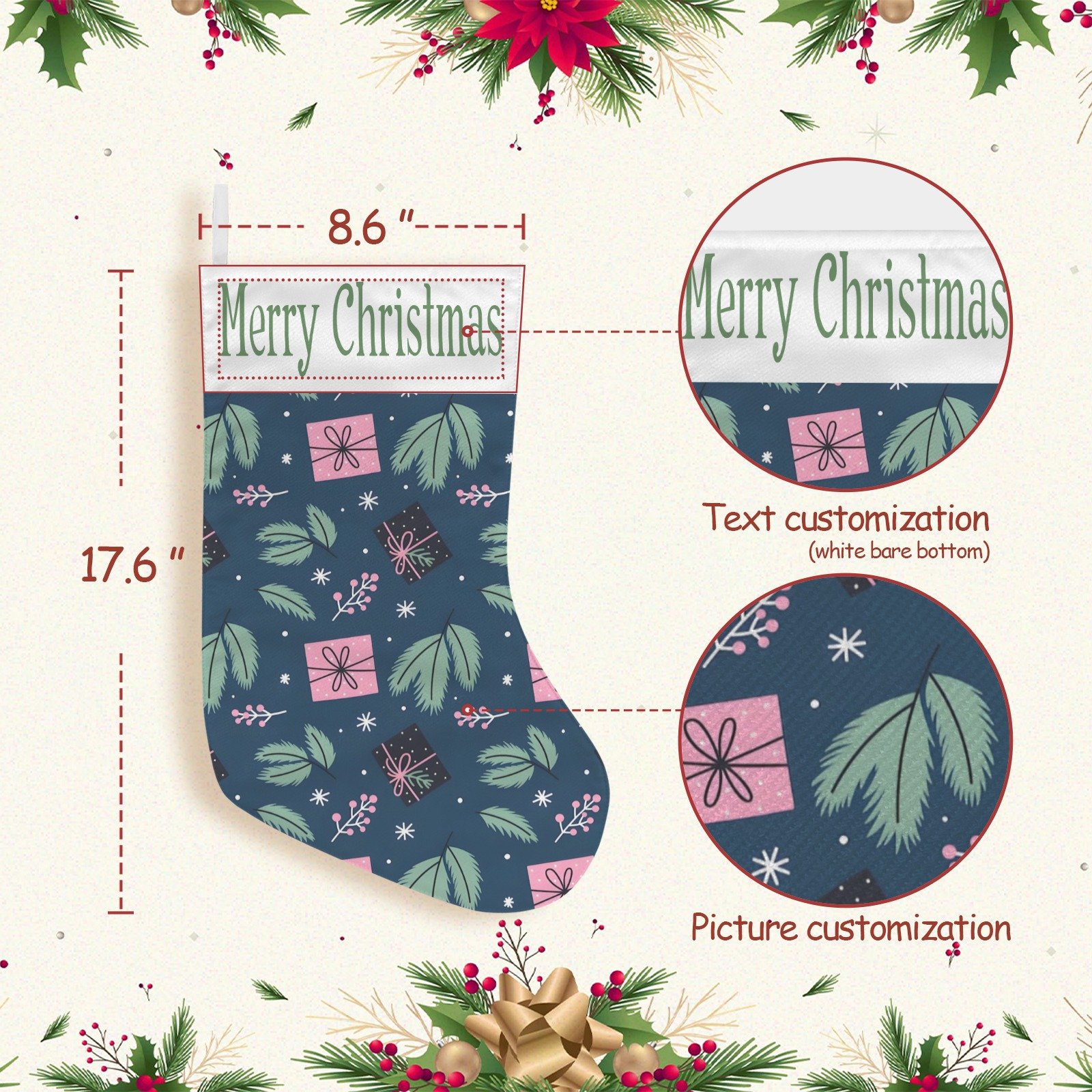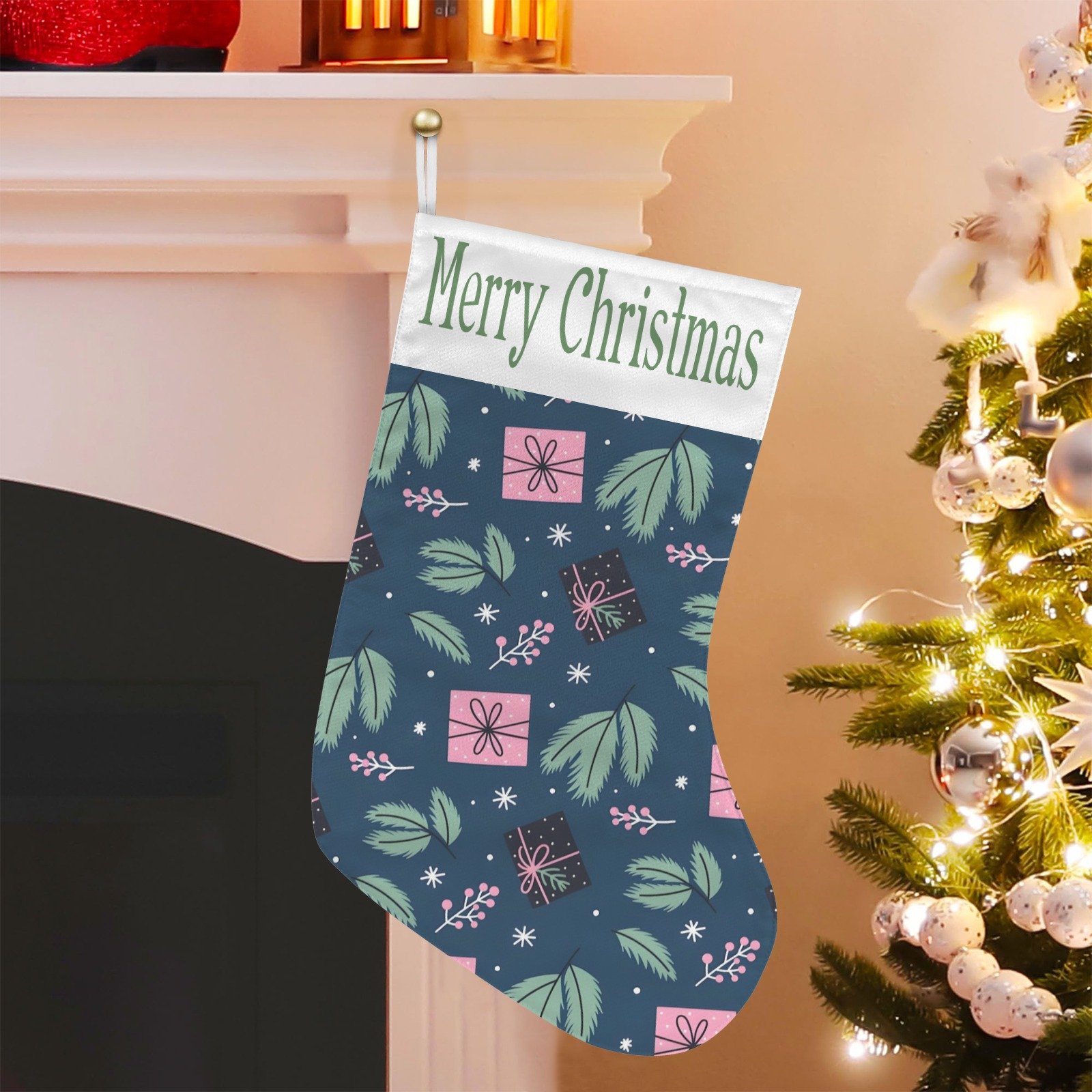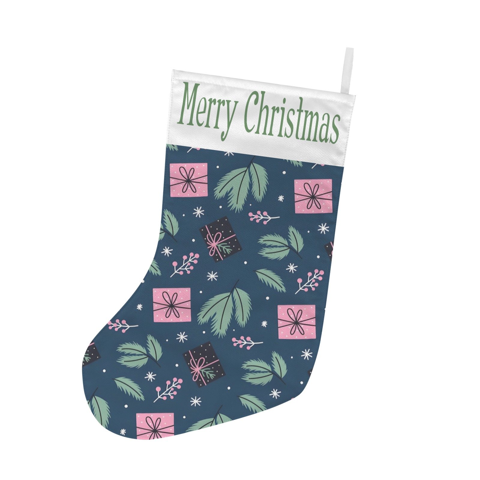 Add a playful and festive touch to your holiday decor with the Christmas Stockings | Holiday Stocking Sock | Pink Berries. Featuring pink gifts accented with holly on a vibrant blue background, this stocking brings cheerful color and holiday charm to your fireplace mantel, Christmas tree, or seasonal display.