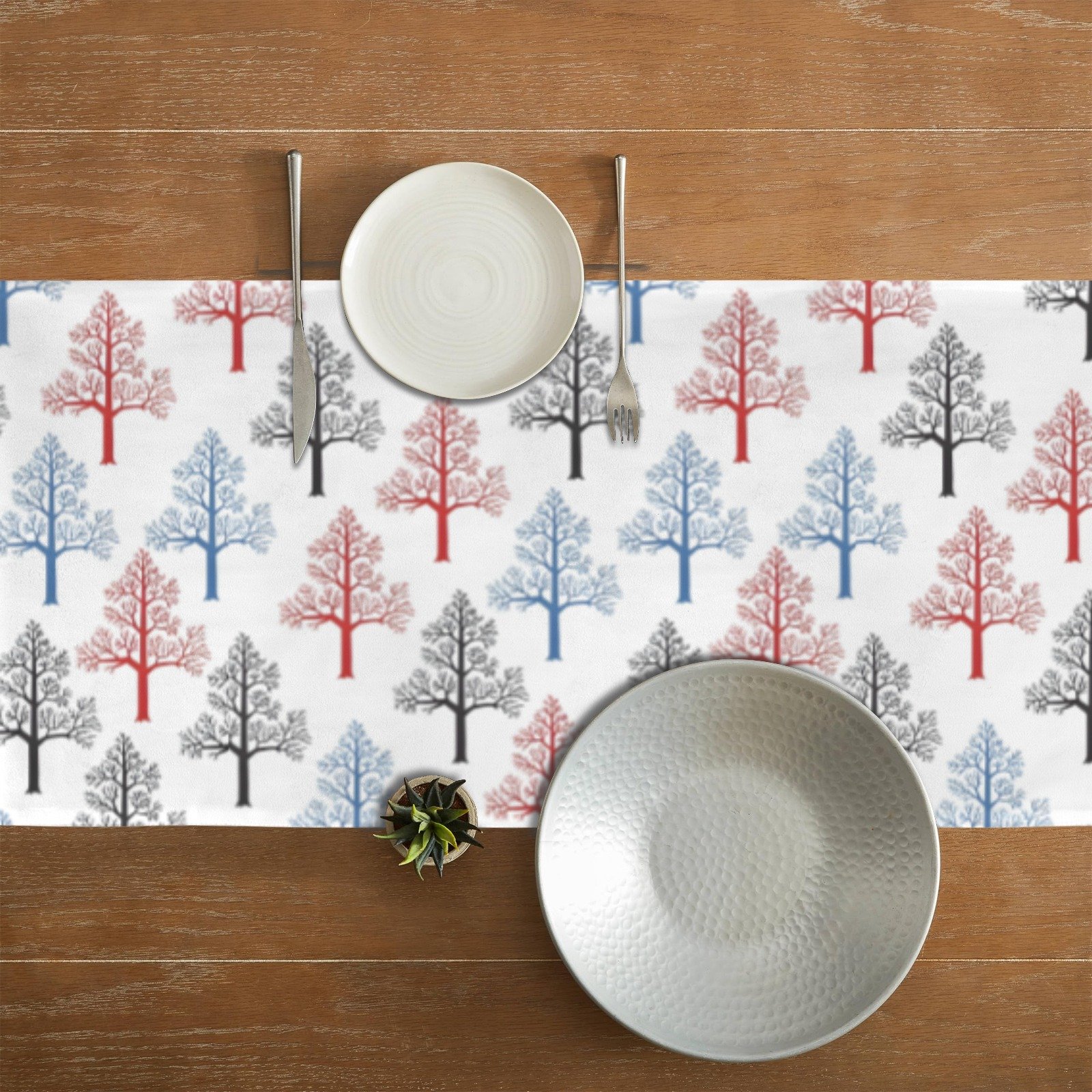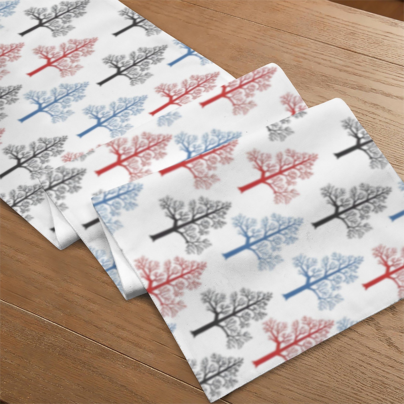 Perfect for placing under festive centerpieces, candles, or holiday dishes, the Colored Oaks Table Runner enhances your holiday table decor while complementing your Christmas table linens and Christmas home decor.