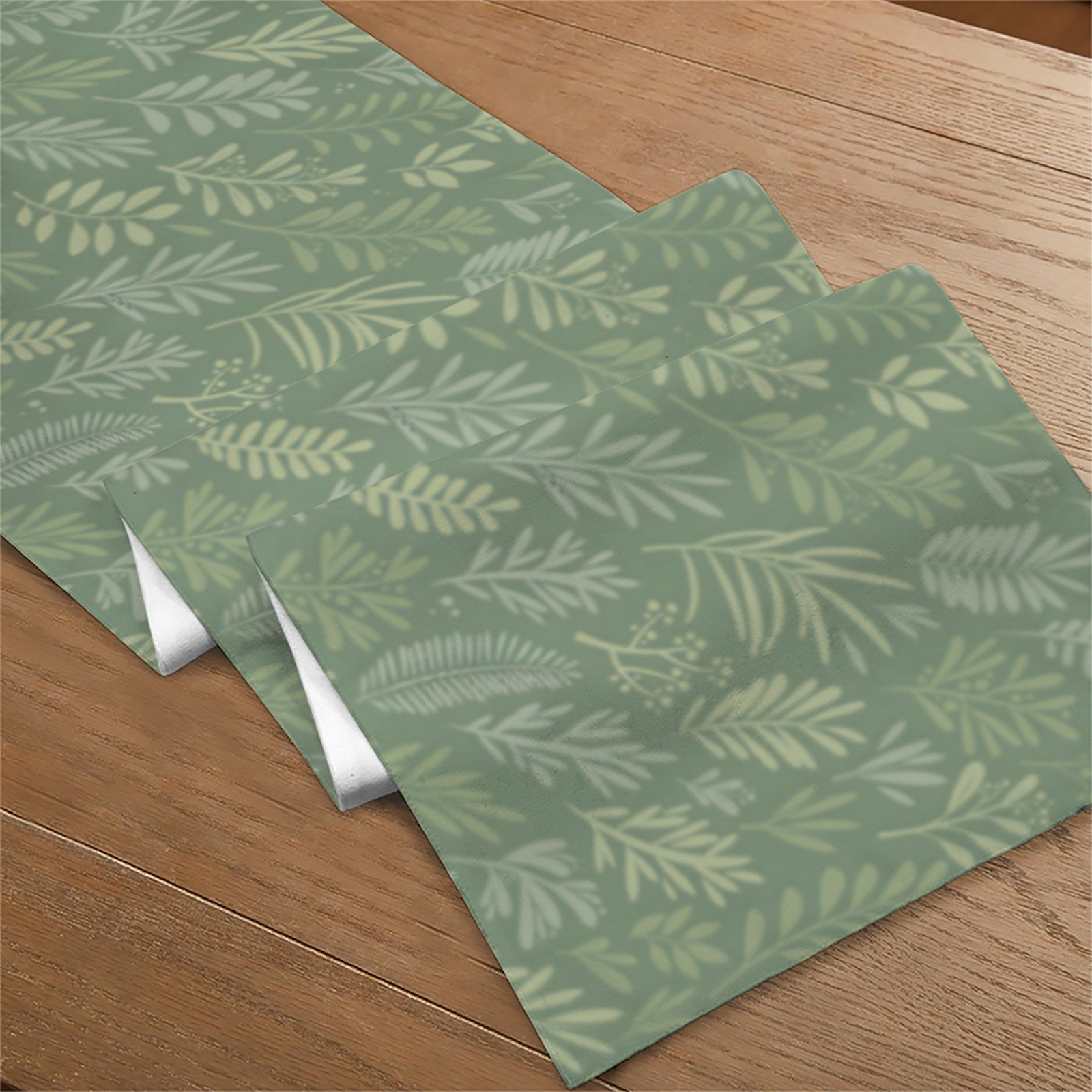 Perfect for displaying centerpieces, candles, or festive dishes, the Green Fern Table Runner enhances your holiday table decor while complementing your Christmas table linens and Christmas home decor.