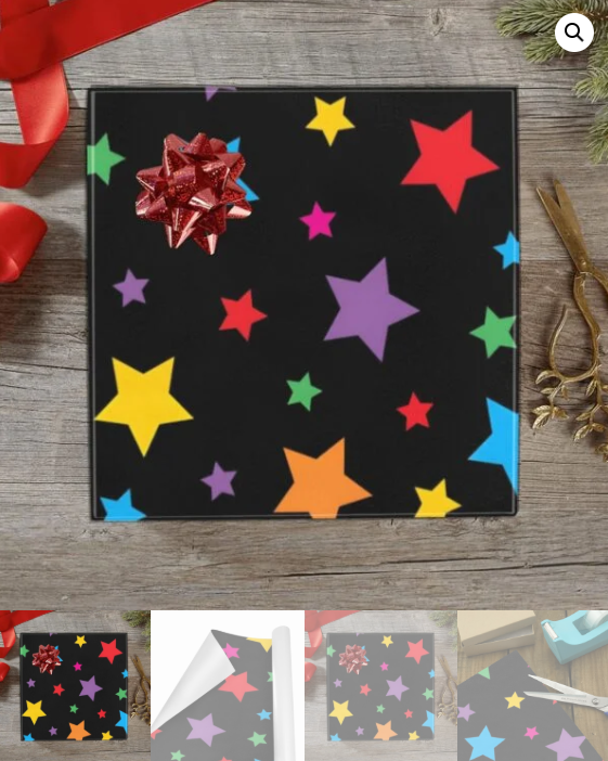 Shine bright this holiday season with Christmas Wrapping Paper | Premium Holiday Gift Wrap – Allstar Design (58″ x 23″). Bursting with vibrant, multicolored stars set against a bold black background, this eye-catching wrap brings modern holiday energy and a fun, festive flair to every gift.