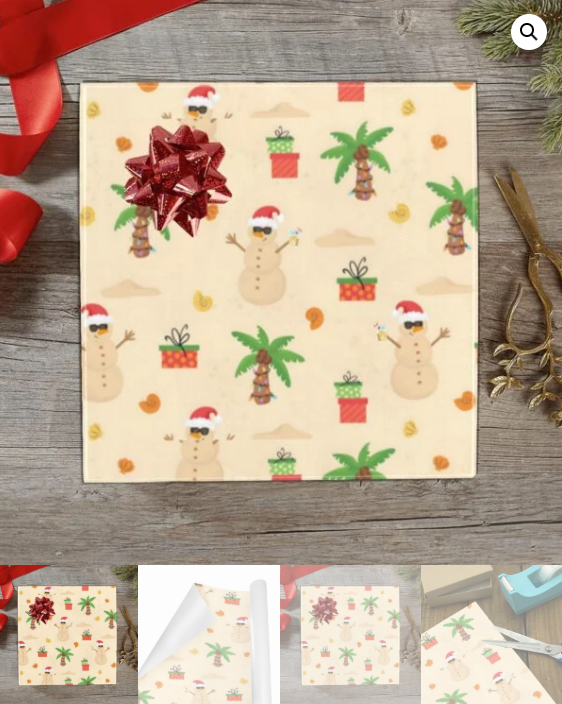 Bring sunshine to Christmas with Miami Christmas Wrapping Paper! Features a snowman in a Santa hat on a tropical beach with palm trees. Premium 6.35 oz. paper, 58″x23″, smooth and durable. Available in 1–5 roll multipacks. Printed in the USA.