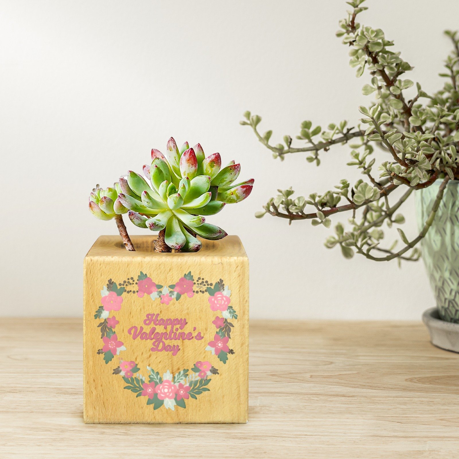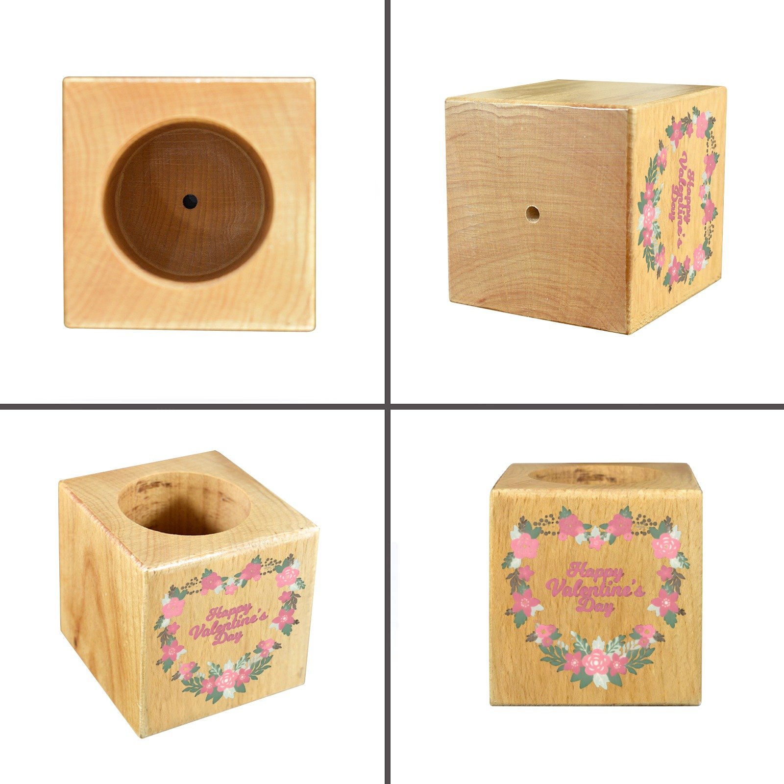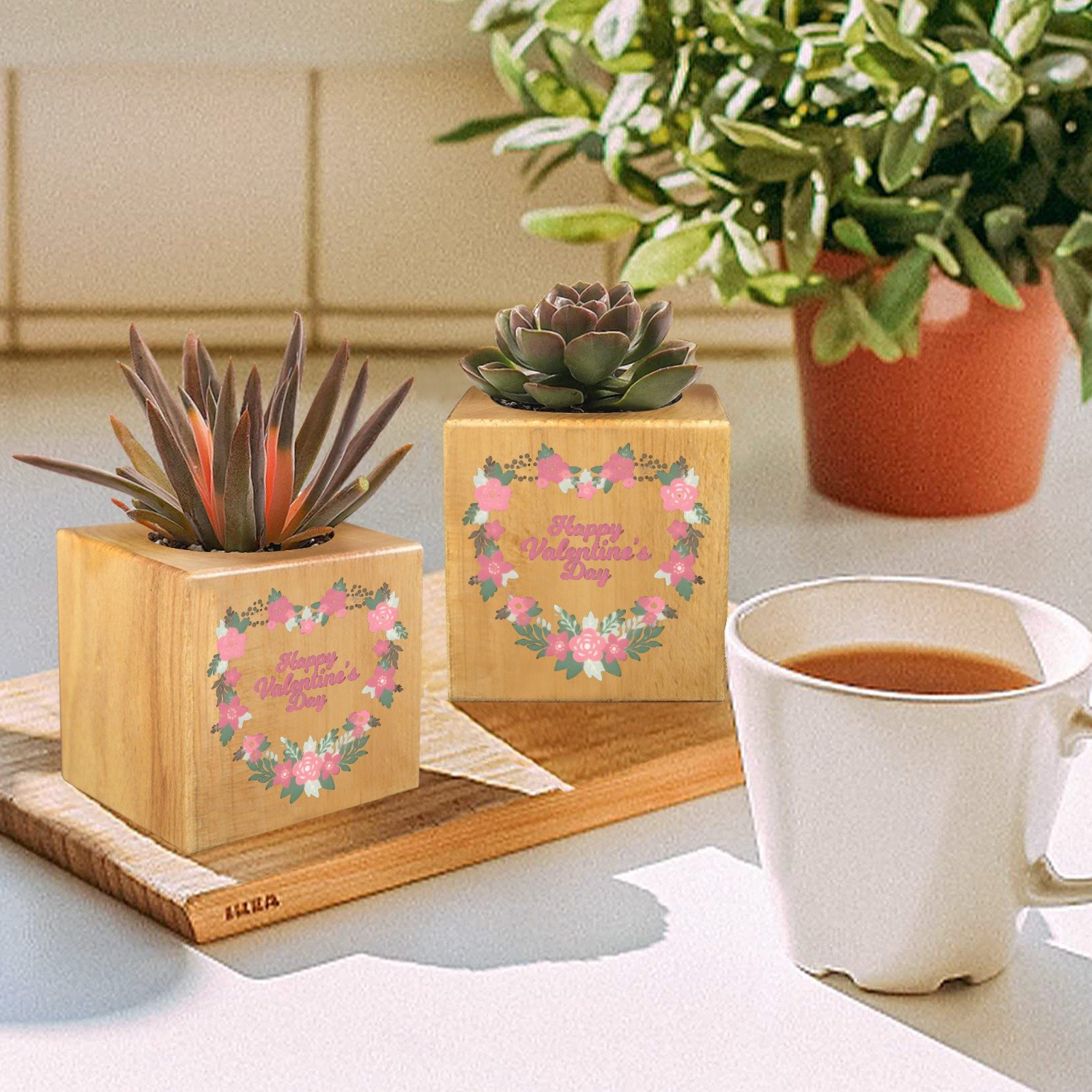 Mini Flower Pot, Valentine’s Indoor Wooden Desk Planter provides a compact decorative option for desks, shelves, and small indoor spaces. This mini flower pot planter features a cube shape with a decorative design, suitable for everyday indoor display.