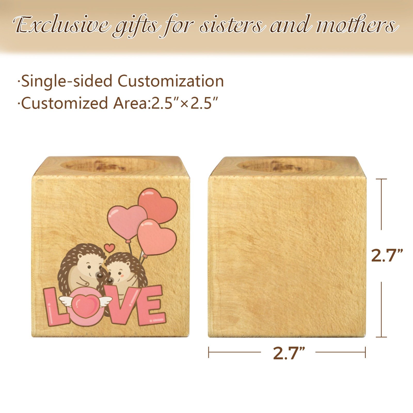 Mini Flower Pot, Valentine’s Indoor Wooden Desk Planter provides a compact decorative option for desks, shelves, and small indoor spaces. This mini flower pot planter features a cube shape with a decorative design, suitable for everyday indoor display.