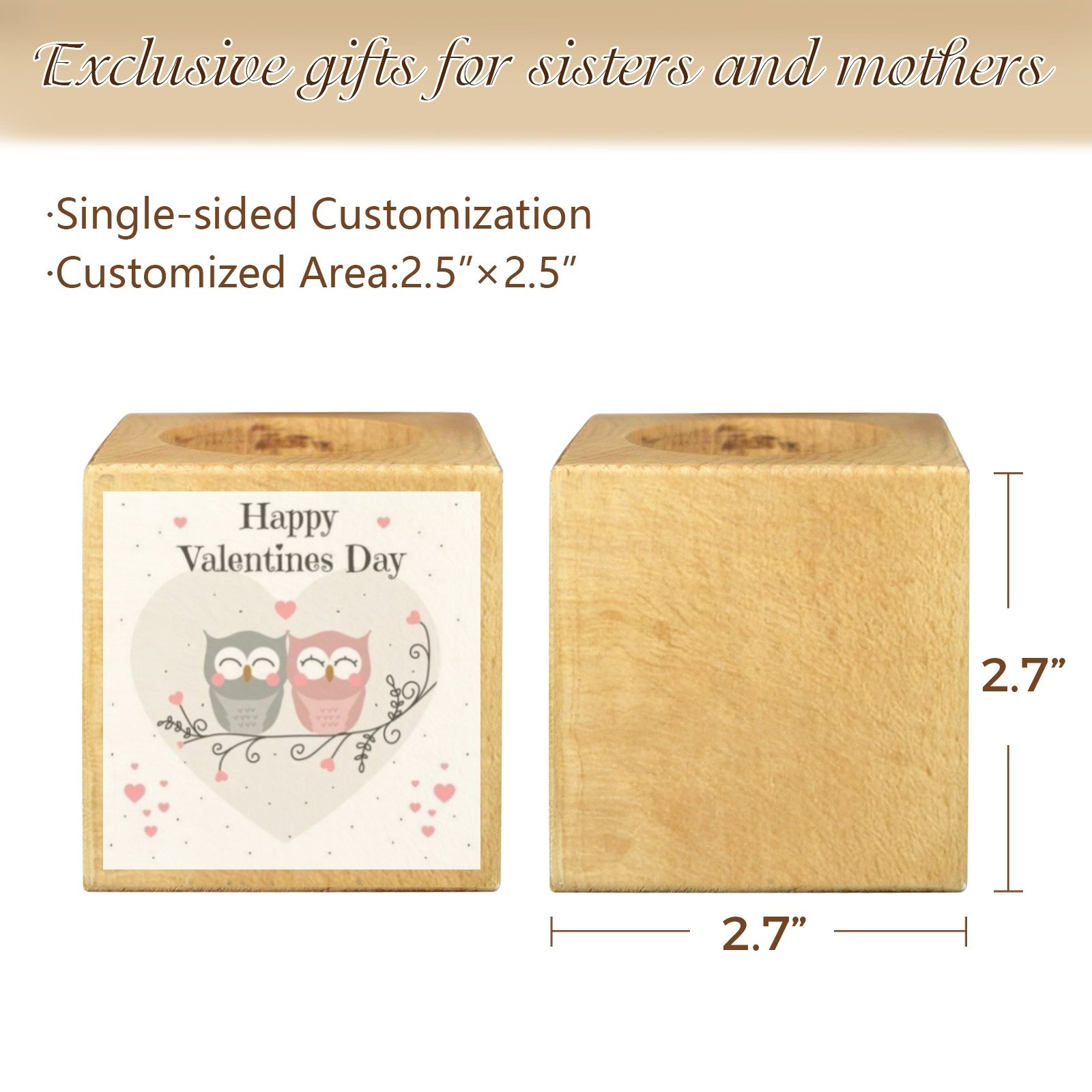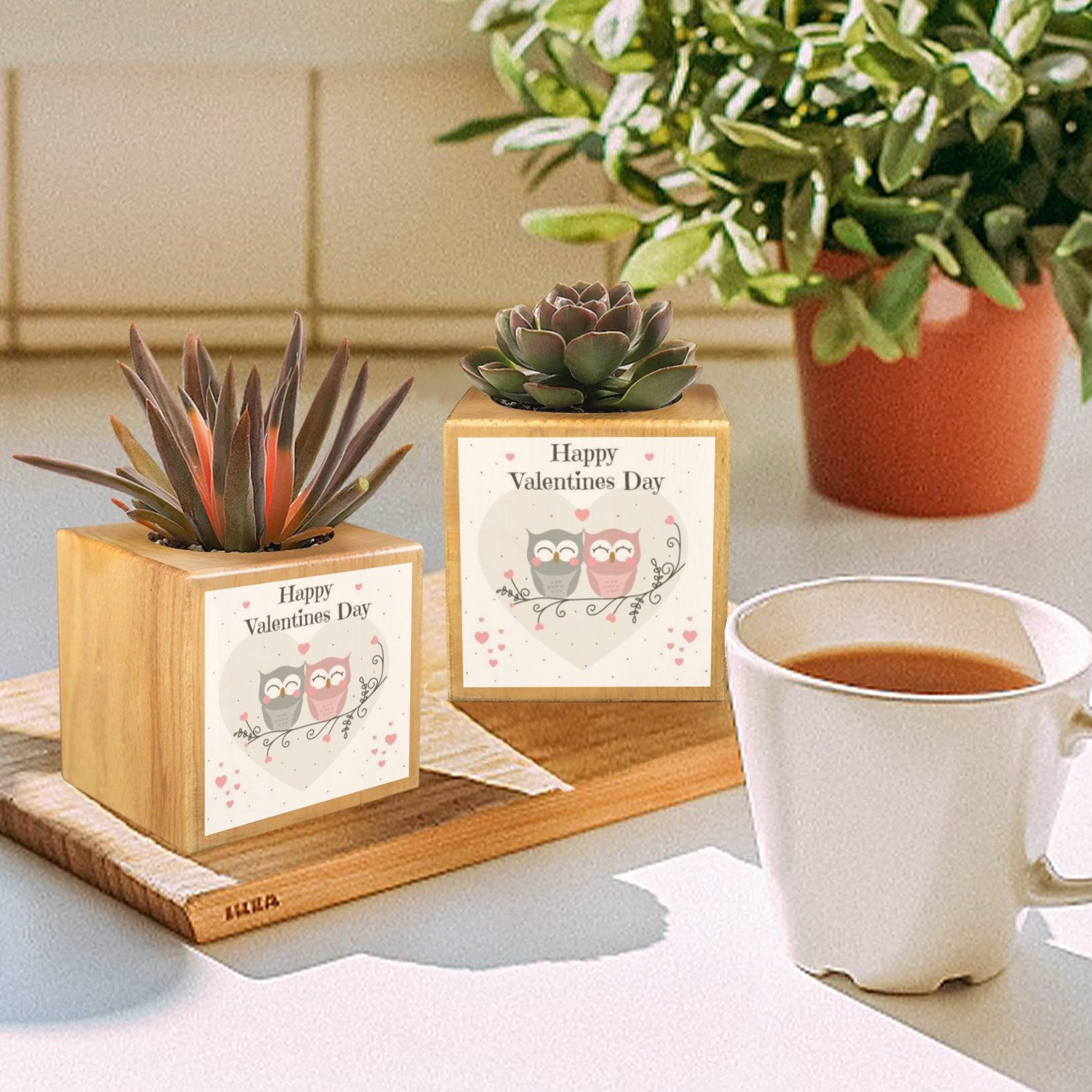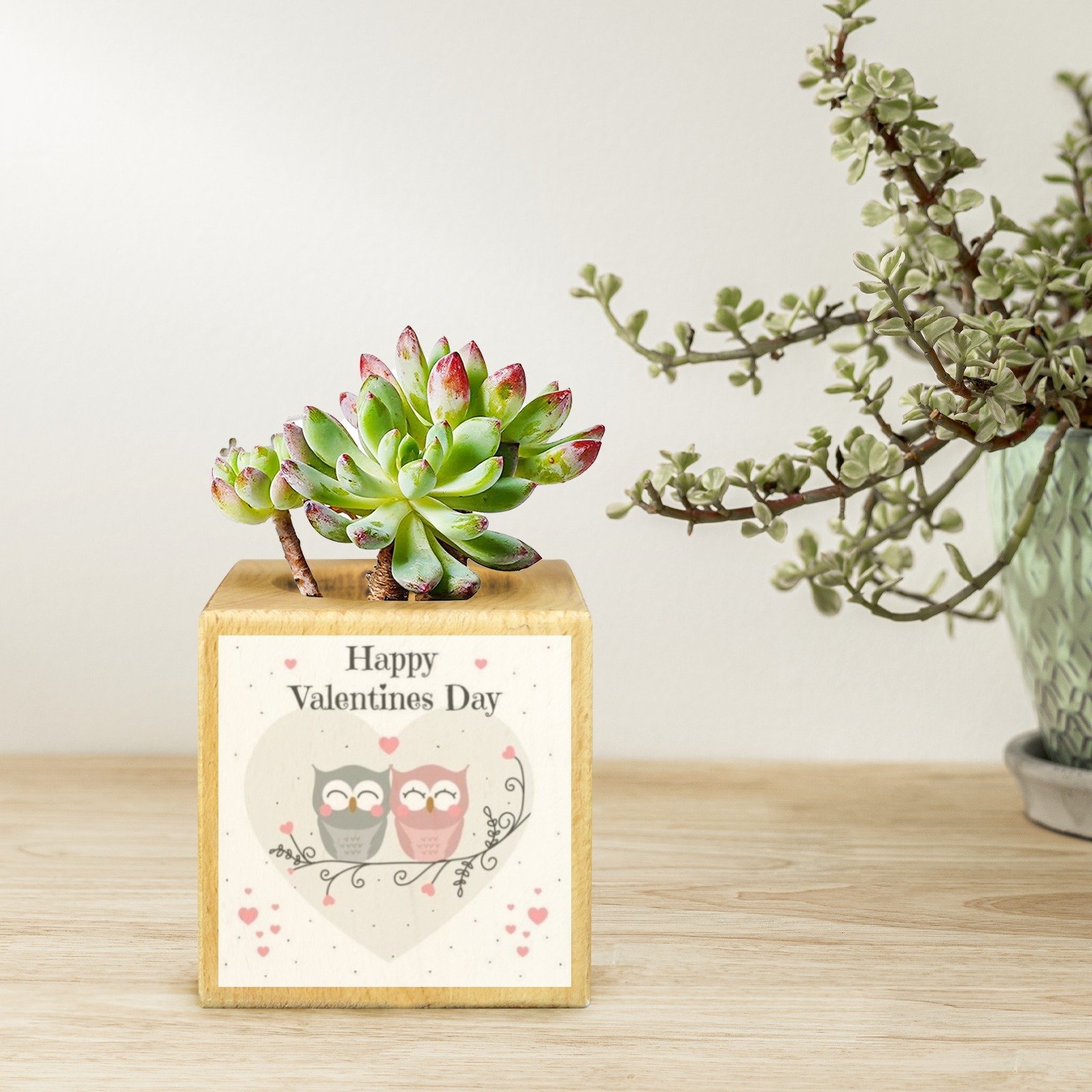 Mini Flower Pot, Valentine’s Indoor Wooden Desk Planter provides a compact decorative option for desks, shelves, and small indoor spaces. This mini flower pot planter features a cube shape with a decorative design, suitable for everyday indoor display.