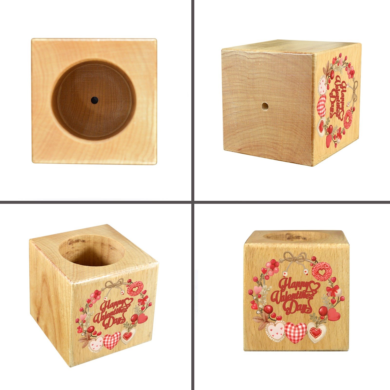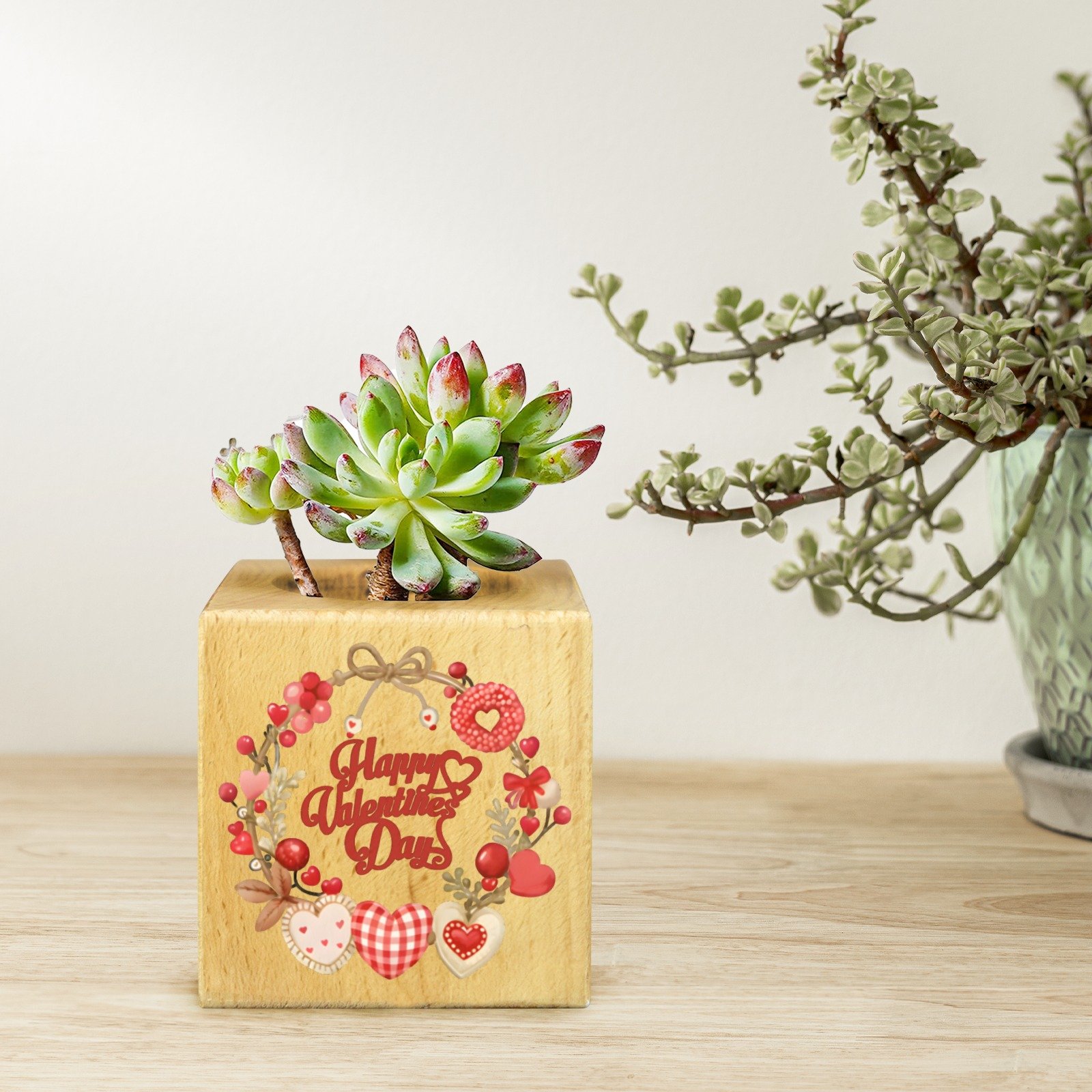 Mini Flower Pot, Valentine’s Indoor Wooden Desk Planter provides a compact decorative option for desks, shelves, and small indoor spaces. This mini flower pot planter features a cube shape with a decorative design, suitable for everyday indoor display.
