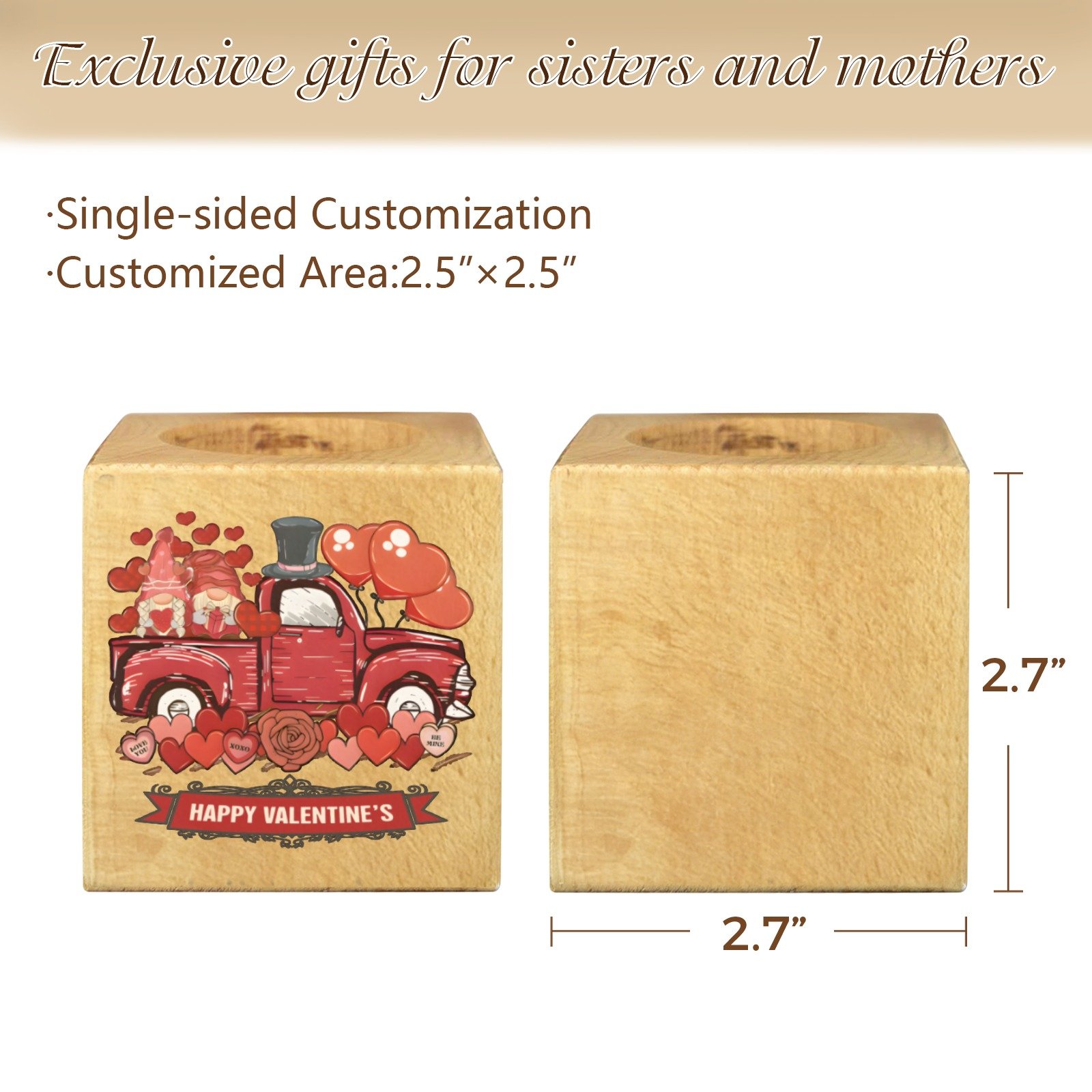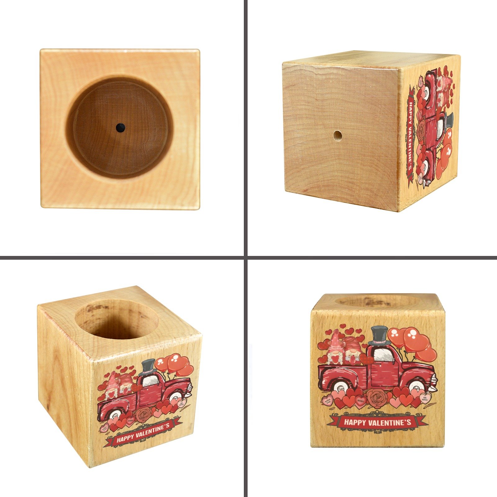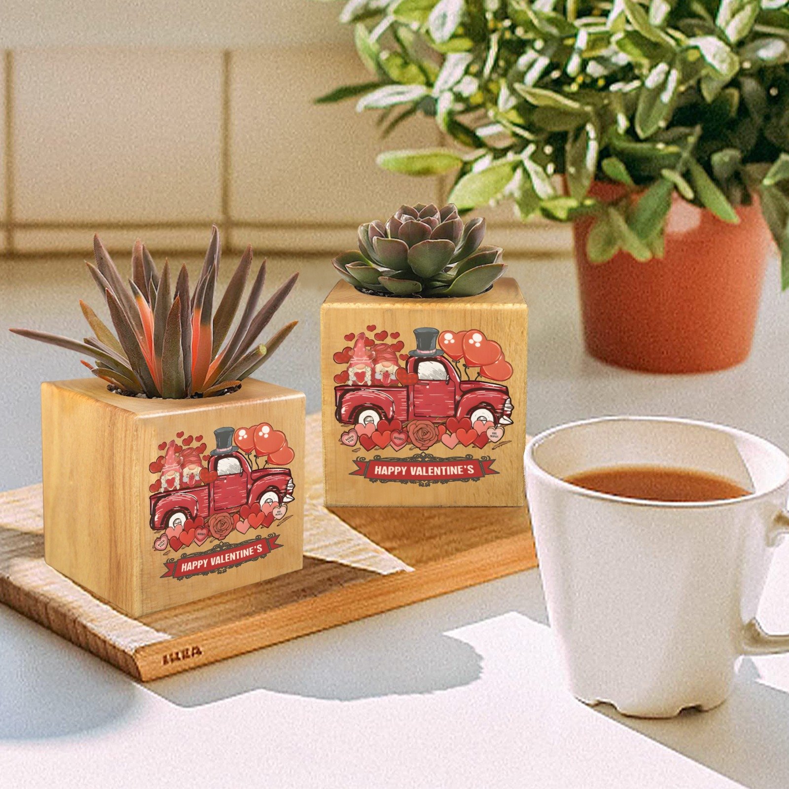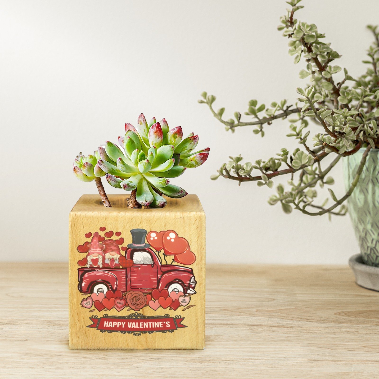 Mini Flower Pot, Valentine’s Indoor Wooden Desk Planter provides a compact decorative option for desks, shelves, and small indoor spaces. This mini flower pot planter features a cube shape with a decorative design, suitable for everyday indoor display.
