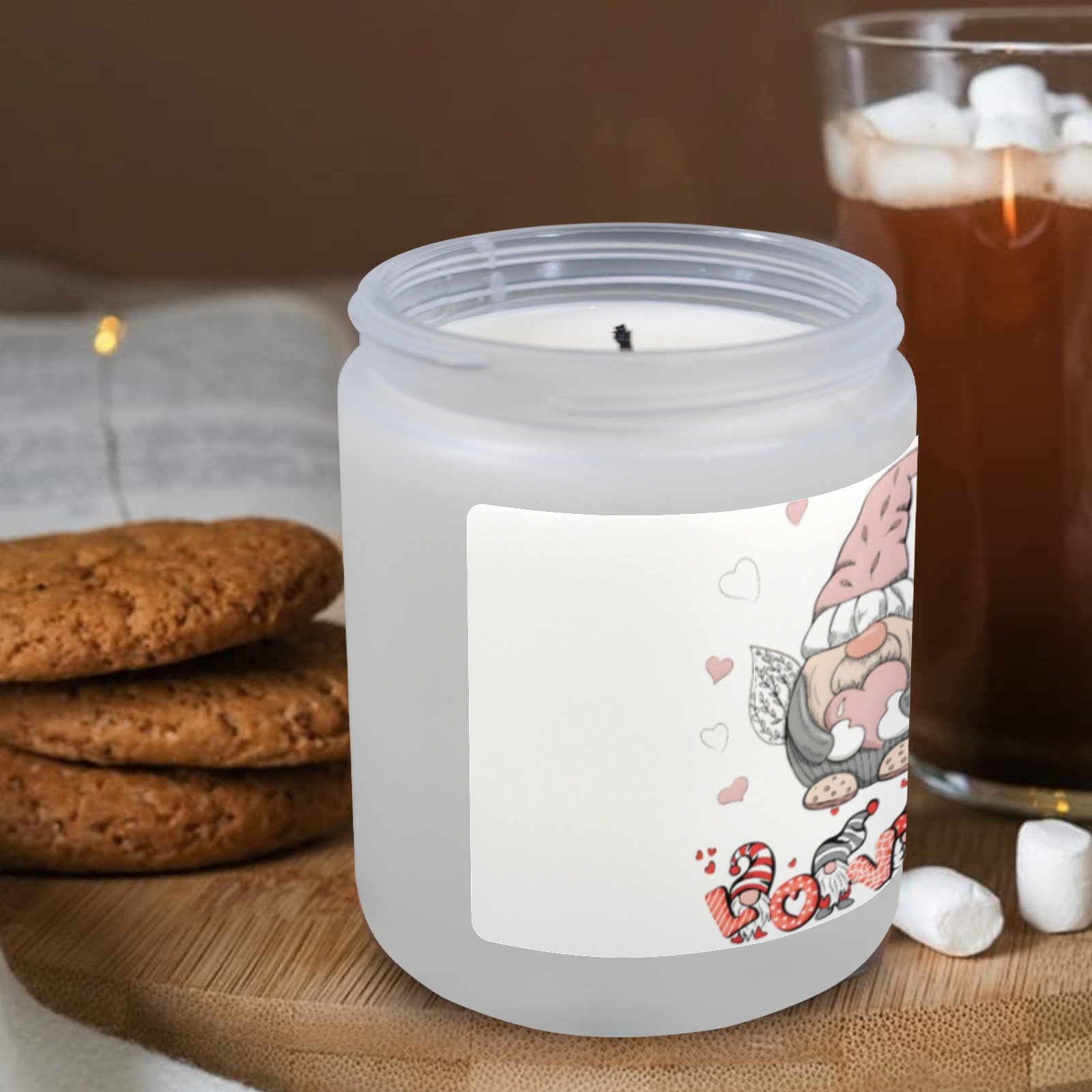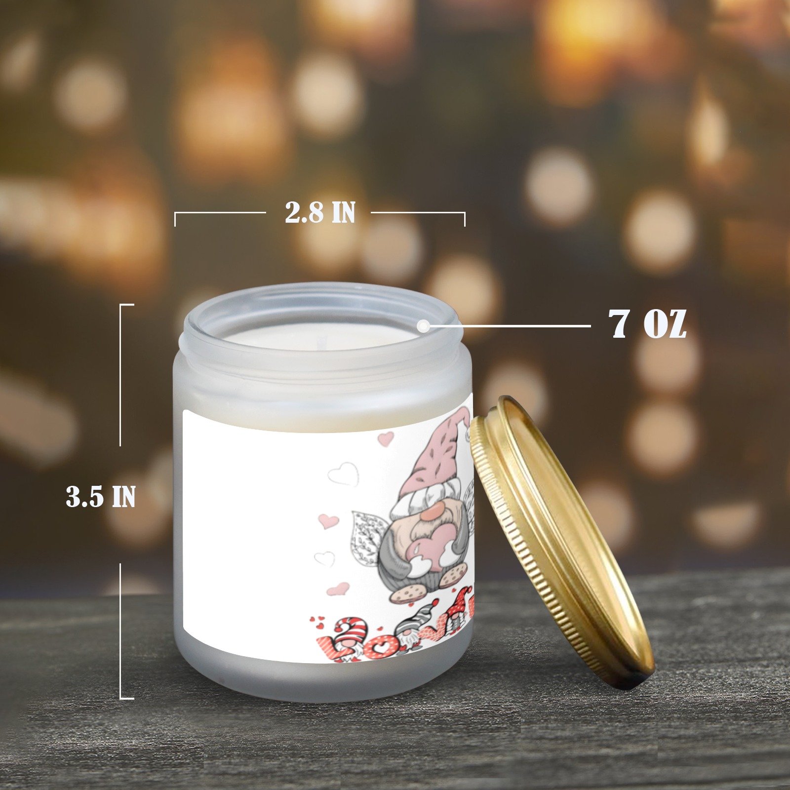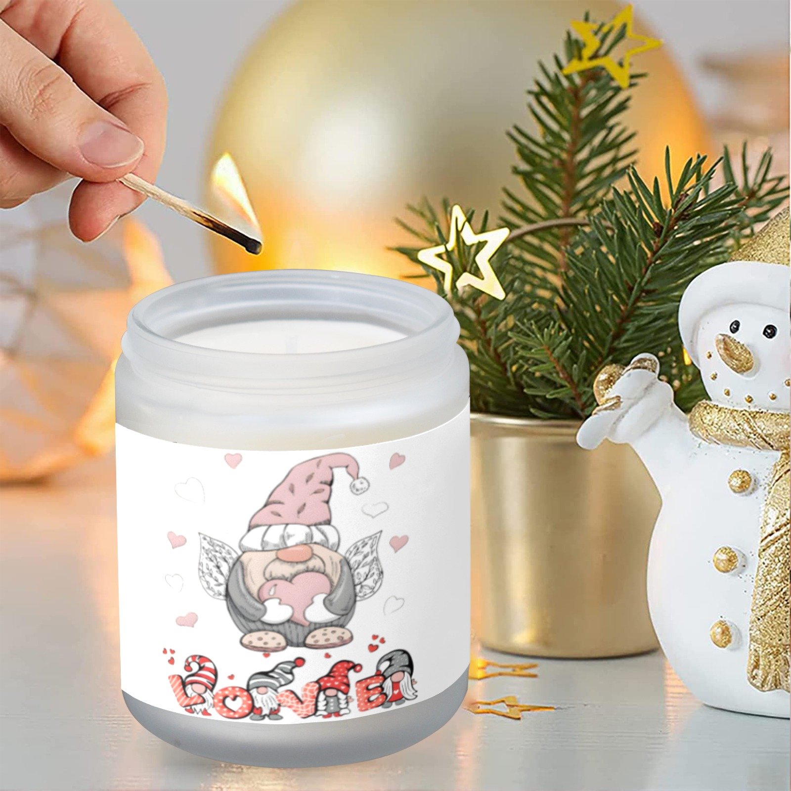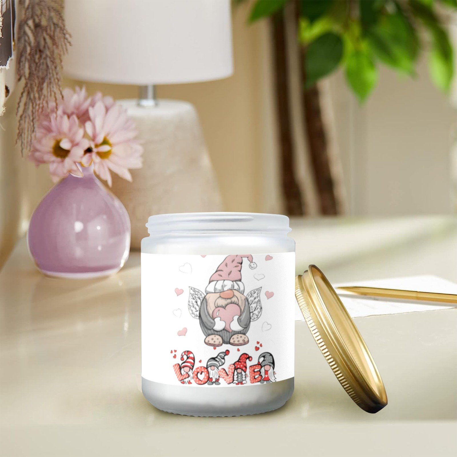 This Valentine’s Gnome Love scented candle is designed as a decorative indoor accent that adds both visual detail and fragrance to a space. The candle is contained in a glass jar featuring a gnome-themed Valentine’s design, creating a distinct seasonal look without overwhelming surrounding decor.