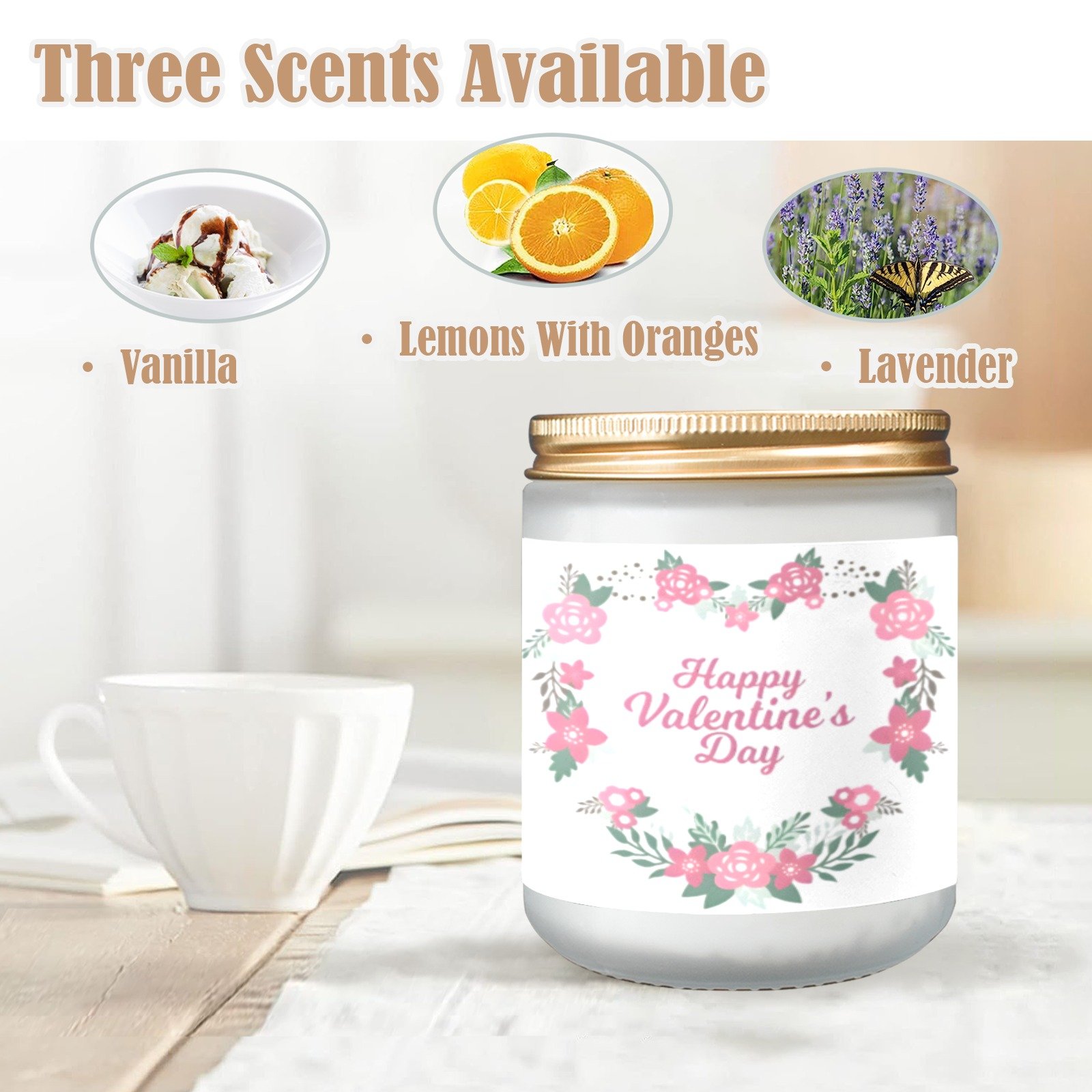 This scented glass jar candle features a Valentine’s heart wreath design created to complement seasonal décor and indoor living spaces. The frosted glass jar offers a simple, refined look that blends easily with home décor styles while providing a contained and stable candle presentation.