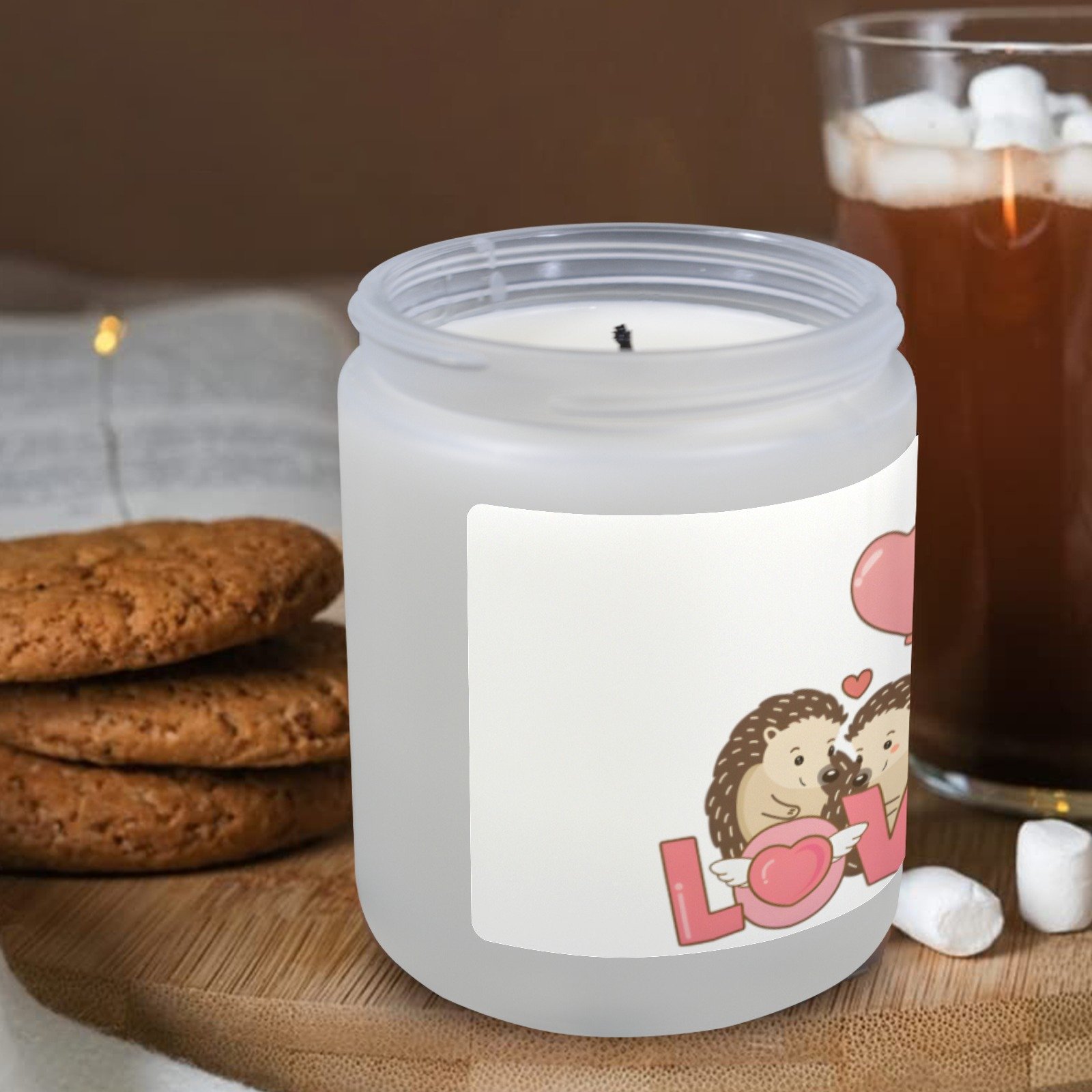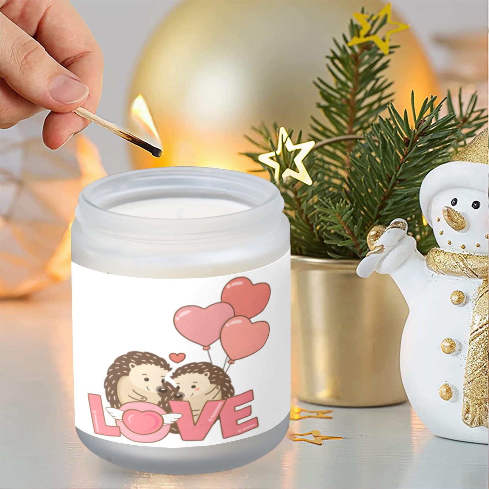 Bring a playful, cozy touch to your indoor décor with this Valentine’s hedgehogs scented glass jar candle. Housed in a frosted glass jar, the candle combines a whimsical hedgehogs design with soothing fragrance options, perfect for creating a warm and inviting atmosphere.