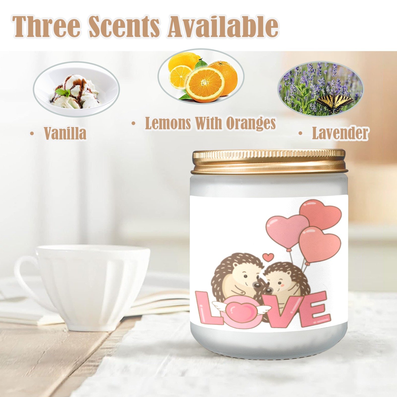 Scented Glass Jar Candle – Valentine’s Hedgehogs Design, Vanilla, Lavender, or Orange Lemon Fragrance